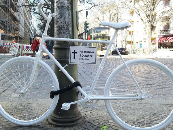 Nach einem stillen Gedenken, stellte der Allgemeine Deutsche Fahrrad-Club e.V. (ADFC) ein weißes Geisterrad an der Unfallstelle auf und startete gemeinsam mit den Mahnwachen-Teilnehmern eine Fahrraddemo zum Bundesverkehrsministerium.