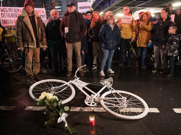 Eine 68 Jahre alte Radlerin wird am Kottbusser Tor von einem nach rechts abbiegenden Lkw getötet. Etwa 300 Menschen kommen zum Gedenken an das Opfer.