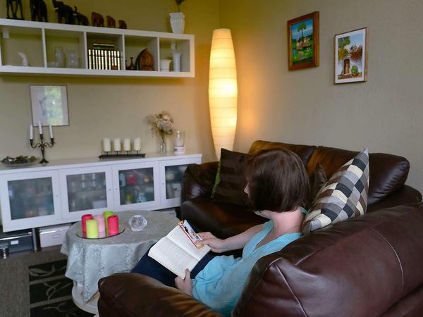 „Wo ist das Problem?“, fragt man sich kurz, wenn man Sabrina heute in ihrer 55-Quadratmeter-Wohnung in Pankow besucht. An den Wänden hängen Holzfische in Rosa, Gelb, Grün und Blau. Rundliche Frauen aus Ton – Erinnerungsstücke an Nicaragua, wo Sabrina vor ihrer Erkrankung ein halbes Jahr Spanisch lernte – tragen buntes Obst vor der Brust her. Leben, Tod, schwarz, weiß. Sabrina trägt eine zart grüne Bluse, passend zu ihren Augen. Die 34-Jährige wirkt selbstbewusst, kompetent. Gemütliches Sofa, volles Bücherregal. An der Wand ein Kochbuch neben dem anderen.