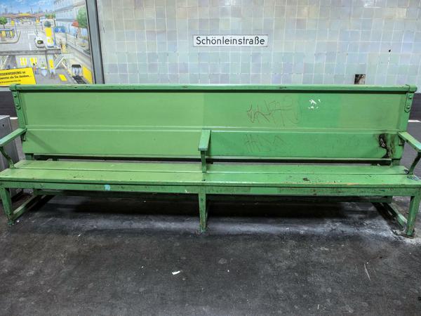 Auf dieser Bank auf dem U-Bahnhof Schönleinstraße in Berlin-Kreuzberg schlief der Obdachlose.