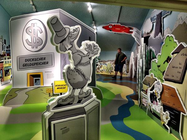 Kernstück ist ein 130 Quadratmeter großer stilisierter Entenhausen-Nachbau, in dem man in Donalds Haus oder Daniel Düsentriebs Werkstatt vorbeischauen kann, den Fuchs mit dem Spruch „Dem Ingeniör ist nichts zu schwör“ verewigte. Besonders beliebt bei den jüngeren Besuchern: Ein Talerbad im Geldspeicher von Dagobert Duck.