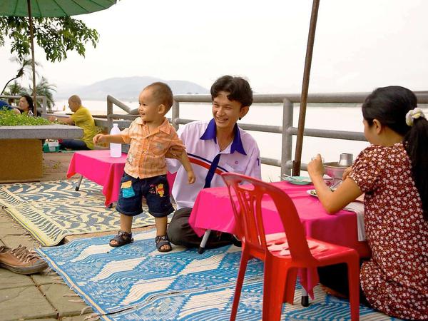 Die Heimat seiner Ahnen ist nah und fern zugleich. Der offizielle Grenzübergang – der einzige, der Thailand und Laos auf dem Landweg miteinander verbindet – liegt siebzig Kilometer entfernt in Chongmek. Für den Gegenwert von zehn Euro aber werfen Fischer den Außenbordmotor an, um Neugierige ans andere Ufer zu bringen. Nur die sprachliche Grenze verläuft fließend: An beiden Ufern wird ein ähnlicher Dialekt gesprochen. Er erinnert daran, dass die Grenze während der Kolonisierung Indochinas durch Frankreich willkürlich gezogen wurde.