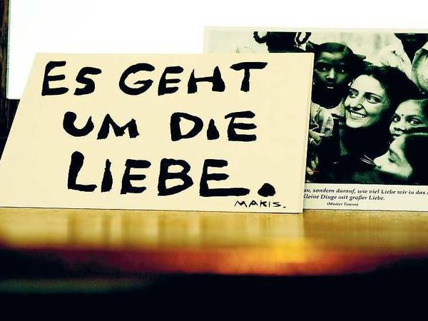 Vielleicht kann man sich so die moderne Variante eines Klosters vorstellen. Ein Mietshaus in Neukölln, auf der Klingel an der Richardstraße steht „Verein Offenes Herz e.V.“. Die Klingel gehört zu einer Wohnung im 3. Stock. Vor einem Spiegel in dem engen Flur steht ein Stück weiße Pappe, darauf ist zu lesen: „Es geht um die Liebe“. Im Wohnzimmer mit großem Esstisch und Sofa fallen zwei angestrahlte Kunstwerke auf. Von hier aus kämpft der französische Priester Jean-Marie Porté mit vier Mitstreitern seit zwei Jahren gegen die Einsamkeit der Menschen in der Umgebung, vor allem gegen die Einsamkeit der Künstler. Die Idee dazu kommt aus New York: „Künstler in New York hatten uns gesagt, dass in Berlin jetzt alles stattfindet in der Kunst, dass gleichzeitig eine große Leere herrsche.“