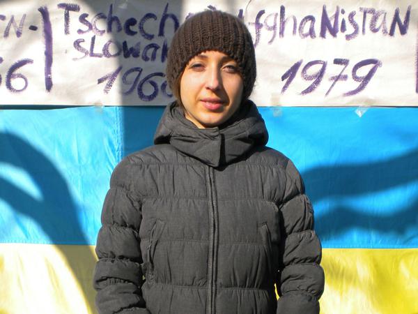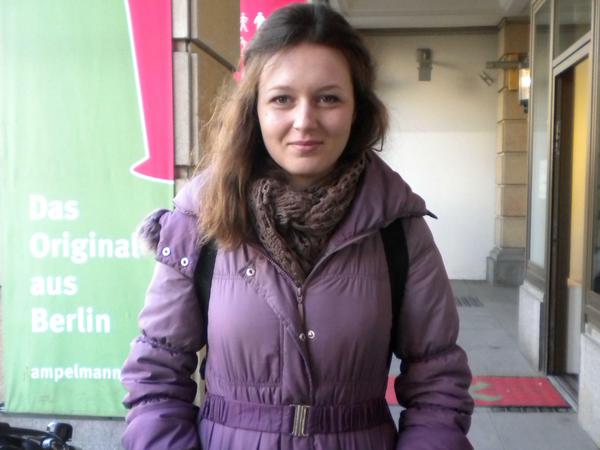 Die Studentin Vladyslava Luchenko aus Kiew genießt ihre Semesterferien bei einem Bummel auf der Friedrichstraße. Sie ist gegen die russische Intervention auf der Krim. „Ich bin schockiert“, sagt die 26-Jährige. Sie ist überzeugt, dass Russland nicht berechtigt ist, auf der Krim einzumarschieren. „Es gibt einfach keinen Grund dafür“, sagt sie, „endlich übernimmt das ukrainische Volk die Initiative und kämpft für seine Rechte.“ Luchenko macht sich Sorgen um ihre Landsleute und hofft, dass es nicht zu weiterem Blutvergießen wie auf dem Maidan in Kiew kommt. „Die Menschen dort sind Helden“, meint Luchenko, die sich nun um Freunde und Familie in der Heimat sorgt.