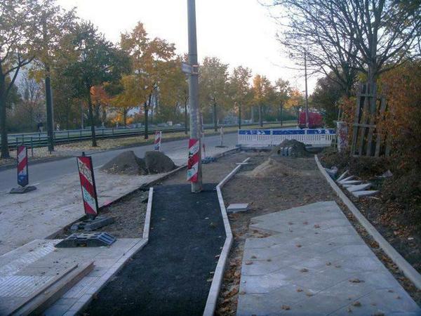 Die Risaer Straße in Hellersdorf gehört nicht zu den schönsten Fahrradstrecken der Stadt. Radfahrer werden auf einen schmalen Radweg auf dem Bürgersteig gezwungen, der größtenteils noch aus holprigen Betonplatten besteht. Endlich tut sich was, mochte man bei diesen Bauarbeiten an einer Bushaltestelle denken. Vielleicht der Beginn eines umfassenden Umbaus mit einem Radstreifen auf der Straße? Nein, weit gefehlt, stattdessen führt dieser Weg in der Nähe des U-Bahnhofs Hellersdorf direkt an einen Laternenmast. Autsch!
