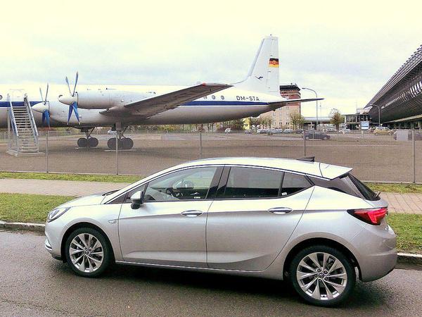 Gegenüber dem eher langweiligen VW Golf ist der neue Astra geradezu ein Beau. Fast schon ein fünftüriges Coupé, dessen abfallendes Dach zu schweben scheint. Der um fünf Zentimeter verkürzte Astra kaschiert geschickt, dass er noch immer elf Zentimeter länger als der Golf ist. Doch anders als der VW ist der neue Opel keine bloße Weiterentwicklung, sondern eine komplette Neukonstruktion, die auf einer völlig neuen Konzern-Fahrzeugarchitektur aufbaut, welche in Rüsselsheim entwickelt worden ist. Damit konnten zwei Schwachpunkte des Vorgängers gezielt ausgemerzt werden: Der Neue ist bis zu 200 Kilogramm leichter geworden, und er bietet nun endlich auch den Platz im Innenraum, der in dieser Klasse erwartet wird. Der Radstand des Astra nahm um gut zwei Zentimeter ab, das Platzangebot ist dennoch gewachsen. In Kombination mit neu gestalteten Sitzen genießen die Passagiere im Fond nun 35 Millimeter mehr Beinfreiheit als bisher. Dazu erfreut sich der Fahrer an 22 Millimeter mehr Kopffreiheit. Dies kommt dem Raumgefühl zugute. Dazu später noch mehr.