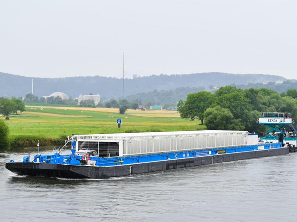 Der erste Atommüll-Transport auf einem Fluss in Deutschland bringt ausgediente Brennelemente aus dem stillgelegten Kernkraftwerk Obrigheim ins Zwischenlager am Kraftwerk Neckarwestheim.