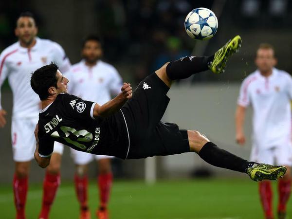 Das Engagement der Borussia wurde mit der Führung belohnt. Bei einer Hereingabe von Granit Xhaka reagierte Stindl geistesgegenwärtig, lief im Gegensatz zur Sevilla-Defensive weiter durch und schob aus kurzer Distanz ein. Auch gegen Manchester City (1:2) und Juventus Turin (1:1) hatte man in den Heimspielen vorne gelegen. Diesmal sollte der Vorsprung auf keinen Fall wieder verspielt werden.