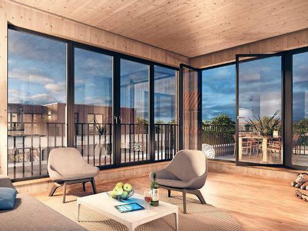 Was mehrgeschossige Häusern aus Holz angeht, haben sich Berliner Architekten einen guten Ruf erarbeitet. Besonders das Büro Kaden + Lager dehnte die Grenzen des Möglichen immer weiter aus. Jetzt gibt es wieder ein Berliner Projekt, dessen Bauweise als Premiere angekündigt wird. Am Schmollerplatz in Alt-Treptow errichtet der Hamburger Projektentwickler Garbe die nach eigenen Angaben ersten Mehrfamilienhäuser Europas der Gebäudeklasse 5 (über 13 Meter Höhe), deren Außenwände aus massivem Holz bestehen. Der Entwurf dafür stammt von Zanderroth Architekten.