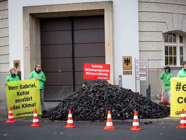 "Verstehe ich Sie richtig: Sie möchte diese Veranstaltung instrumentalisieren, um über Braunkohle zu reden, obwohl das hier gar keine Rolle spielt?", fragte Gabriel zurück. "Dann sagen Sie das doch!". Dann kam er auf die mutmaßlichen Sympathisanten der Dame zu sprechen: Greenpeace-Aktivisten hatten unmittelbar vor der Veranstaltung acht Tonnen Braunkohlebriketts vor die Pforte seines Ministeriums gekippt und Banner aufgestellt, um gegen die - aus ihrer Sicht - klimaschädliche Kohlepolitik des Ministers zu protestieren. Er kenne den "armen Mann", der das nun alles wegräumen müsse, klagte Gabriel. Dann ließ er sich aber doch inhaltlich auf das Thema ein.
