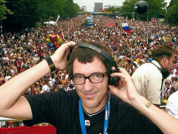 So erinnert sich Dr. Motte, DJ, Labelbetreiber und einer der Väter der späteren Massenveranstaltung, an den Anfang. Die Ereignisse liegen 30 Jahre zurück, er selbst wird bald 59 und steht nun, bei strahlendem Himmel, wieder dort, auf dem Mittelstreifen vor dem KaDeWe. „Die Polizei fuhr vorne und hinten mit, durch das Blaulicht kam Discofeeling auf.“ Ein Grinsen kann er sich nicht verkneifen.