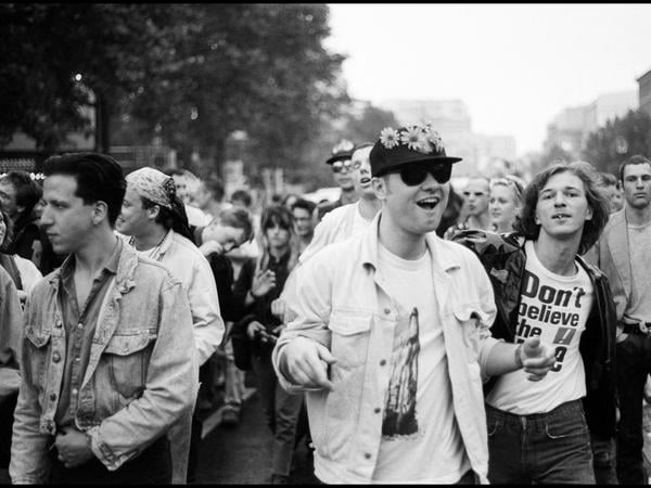 Ein paar Wochen später dann Mottes Geistesblitz: „Wir melden eine Demo an.“ Zehn, vielleicht zwölf Leute machten sich an die Vorbereitung, darunter Radiolegende Monika Dietl, die als Moni D ab Ende der 80er beim Sender Freies Berlin Acid und Techno ins Programm streute.