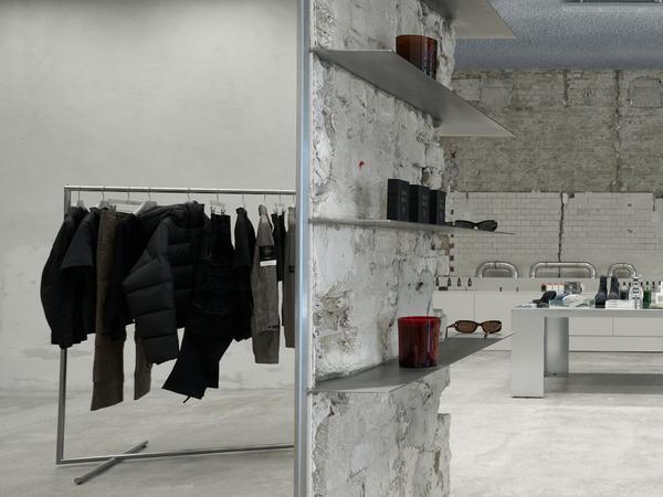 Auf rund 550 Quadratmetern werden hier jetzt hochpreisige, dafür aber sehr tragbare Kleidung, Einrichtungsgegenstände, Parfums und Turnschuhe vertrieben. Ein klassischer Concept-Store eben, einladend, hübsch anzusehen, ansonsten aber nicht weiter weltbewegend. Für die minimale Einrichtung im Industrie-Look, geschliffener Beton, mattes Metall, weiß-graue Wände, ist das Innenarchitekturbüro Vaust Studio verantwortlich.