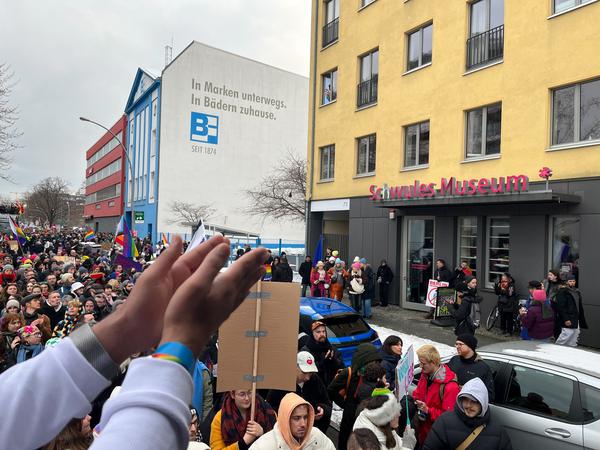 Auch Cansel Kiziltepe (SPD), als Senatorin zuständig für Gleichstellung, Vielfalt und Antidiskriminierung, und Berlins Queerbeauftragter Alfonso Pantisano, waren dabei. „Es geht darum, die Rechte der queeren Community zu verteidigen“, sagte Kiziltepe dem Tagesspiegel. Sie mache sich große Sorgen. „Alles, was wir erreicht haben, wird gerade infrage gestellt.“