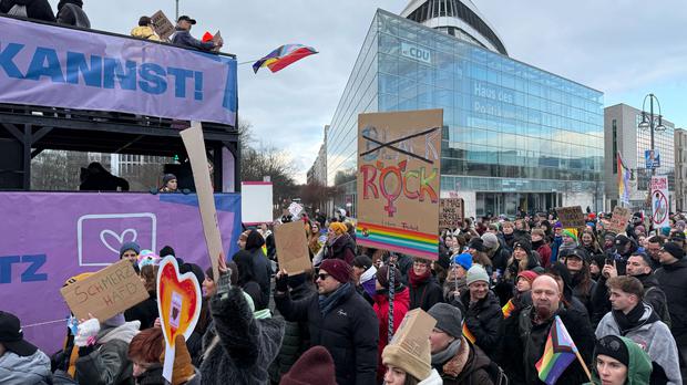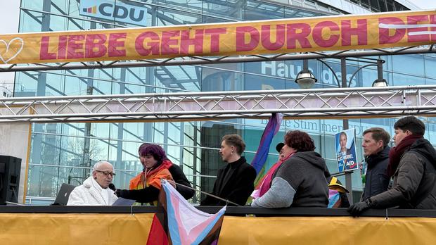 Kerstin Thost vom LSVD⁺–Verband Queere Vielfalt setzte fort, was Klaus Lederer zuvor gesagt hatte: „Das Selbstbestimmungsgesetz ist ein menschenrechtlicher Meilenstein, für den wir so lange gekämpft haben. Die CDU hat in ihrem Wahlprogramm stehen, dass sie dieses wieder abschaffen will und steht damit in einer Reihe mit denen von AfD und BSW.“ Das sei kein Politikwechsel, wie von CDU/CSU behauptet., sondern reaktionär und realitätsfern. (mit dpa)