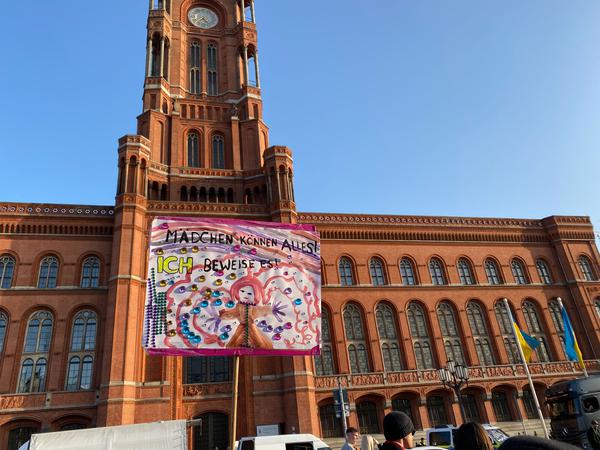 In den Abschlussreden am Roten Rathaus forderten die Redner der verschiedenen Organisationen u.a. die Legalisierung von Schwangerschaftsabbrüchen und die Enteignung von Wohnungsunternehmen.
