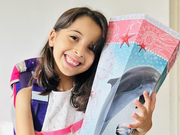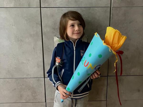 Ich habe schon ein Federmäppchen mit Bleistiften, einem Lineal und einem Radiergummi gekauft. Und meine Großmutter hat mir einen Rucksack aus der Ukraine mitgebracht. Es ist ein Rucksack mit einer Geschichte. Mein älterer Bruder sollte damit in die erste Klasse gehen, damals in der Ukraine. Aber er war kaum in der Schule, der Unterricht fand online statt – erst wegen Covid, dann wegen des Krieges. Der Rucksack war also fast nagelneu. Und als wir die Preise für Rucksäcke hier gesehen haben, haben wir meine Großmutter gebeten, ihn nach Berlin zu bringen.