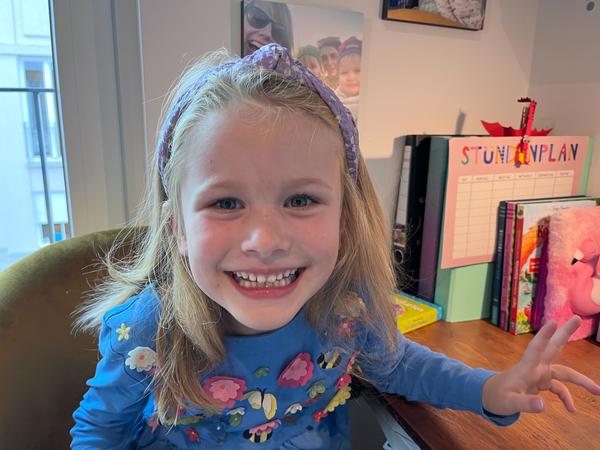 Am meisten freue ich mich auf die Pausen. Der Schulhof ist so cool: Da gibt es ein Beet, das ist wie eine Art Dschungel, da kann man super drin spielen. Und es gibt eine riesige Kletterspinne, wenn man da oben draufsitzt, kann man die ganze Schule sehen. Dann gibt es noch einen kleinen Berg mit Rutsche, darunter kann
