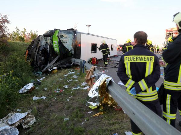 Auf der Autobahn bei Leipzig überschlägt sich ein aus Berlin kommender Flixbus. Ein Mensch stirbt, mehrere schweben in Lebensgefahr. War der Fahrer eingenickt?