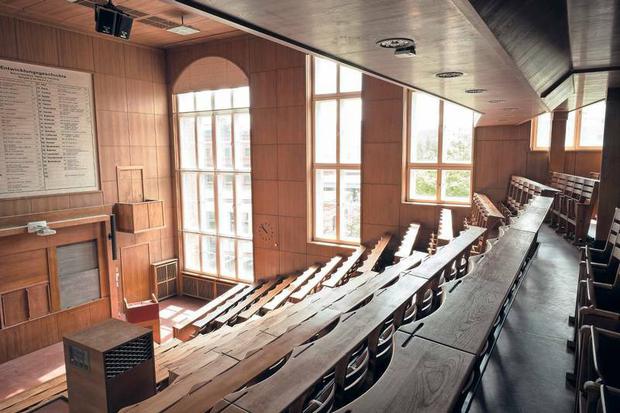 Der Saal steht für ein bedeutendes Stück Berliner Wissenschaftsgeschichte. 1892 knüpfte Emil Fischer, einer der damals führenden deutschen Chemiker und späterer Nobelpreisträger, an seine Zusage an die Berliner Universität eine Bedingung: Ein neues Chemisches Institut, um den gestiegenen Ansprüchen an Forschung und Lehre gerecht zu werden.