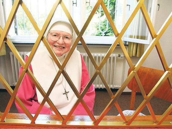 Auch im Besuchszimmer hinter der Klosterpforte durchtrennt ein Gitter den Raum. Schwester Mechtildis, die Oberin des Klosters, reicht ihre Hand zum Gruß durch das Gitter und lächelt freundlich. Das Gitter symbolisiere die Abgeschiedenheit von der Welt, sagt sie. Damit sie sich hinter den Klostermauern ganz und gar auf das Gebet konzentrieren können. Schwester Mechtildis ist 1959 in den Orden eingetreten. Sie hatte mit dem Gedanken gespielt, Lehrerin zu werden, doch der Drang zu Gott und zum Beten war größer. Der Abschied von der Welt ist ihr nicht leichtgefallen. Ihre Mutter war oft krank, und sie hätte sie pflegen sollen. Aber sie dachte, sie könnte ihr ja auch durch ihre Gebete helfen.