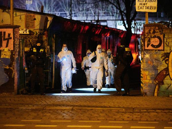 Die Spurensicherung war auf der Suche nach Burkhard Garweg unter anderem auf einem Bauwagengelände in Friedrichshain im Einsatz.