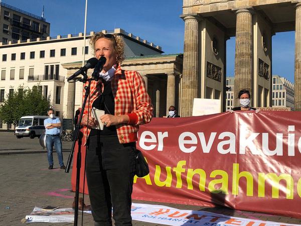 Maximal 20 Teilnehmer, nur unter Einhaltung des Sicherheitsabstandes und alle mussten Mund- und Nasenschutz tragen. Unter diesen Auflagen haben sich am Donnerstagnachmittag mehrere Initiativen unter dem Motto #leavenoonebehind am Brandenburger Tor versammelt, um gegen die Lage in den griechischen Flüchtlingslagern zu demonstrieren. Unter den Teilnehmern waren zahlreiche bekannte Mitglieder von Wohlfahrtsverbänden, Bürgerrechtsorganisationen und Flüchtlingsinitiativen.