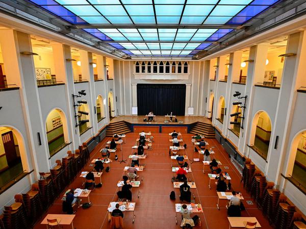 Diese Abschlussnote wird den Schülern normalerweise in der Aula verkündet, einem eindrucksvollen Raum mit hoher Glasdecke, das Herz der Schule. In diesem Jahr wurden die Zensuren nur in die Schul-Cloud hochgeladen, per Handy konnten die Schüler nachschauen.