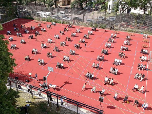 An diesem Montagnachmittag bekommen 135 Schülerinnen und Schüler des Natorp-Gymnasiums im bürgerlichen Berlin-Friedenau ihre Abiturzeugnisse ausgehändigt. In zwei Durchgängen, zwischendurch wird der Sportplatz geräumt, für den ganzen Jahrgang ist nicht genug Platz. Durchgefallen ist niemand aus der Klasse von 2020, der Notendurchschnitt liegt bei 1,9 – es ist der beste in der Geschichte der Schule.