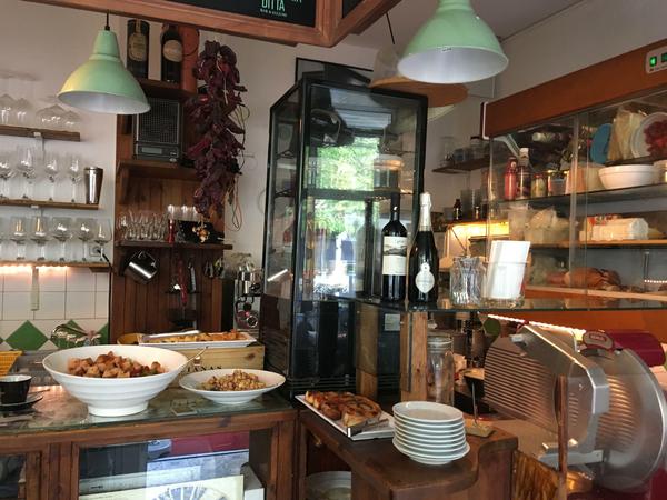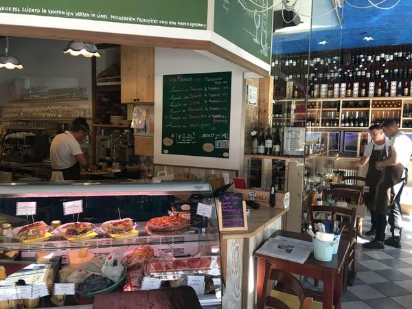 Die Idee des Aperitivo ist es, Leute schon vor dem eigentlichen Abendessen in eine beschwingte Feierabendstimmung zu versetzen. Das funktioniert besser, wenn es kleine Häppchen zu Wein und Spritz gibt. Der kleine, rein italienische Laden am Fuße des Weinbergswegs hat das verstanden, auch, dass dazu eine gewisse Großzügigkeit gehört: Zum Aperitivo gibt es ein kleines, kostenloses Buffet zum Selbstbedienen mit Kichererbsen- und Brotsalat oder Focaccia. Dazu einfache, aber gute Weine, die offen ausgeschenkt werden. In der zweiten Dependance des „preisgekrönten Betriebs“ (Kopenhagener Straße 12 a, Prenzlauer Berg) geht es weniger beschwingt zu, dafür ist das Speisenangebot ausgefeilter.