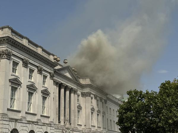Das am Ufer der Themse in der Londoner Innenstadt gelegene Somerset House ist ein Zentrum der bildenden Kunst. In Onlinediensten verbreitete Videoaufnahmen zeigten dichte Rauchwolken über dem Dach des Gebäudes.