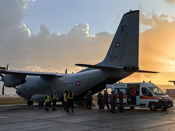 Ein Flugzeug der bulgarischen Luftwaffe, das Verletzte aus Nordmazedonien an Bord hat, landet in Sofia.