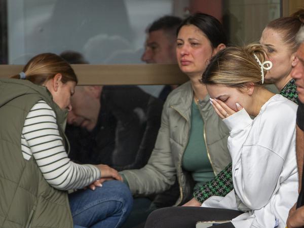 Vor dem Krankenhaus in der nordmazedonischen Stadt Kocani trauern Angehörige.