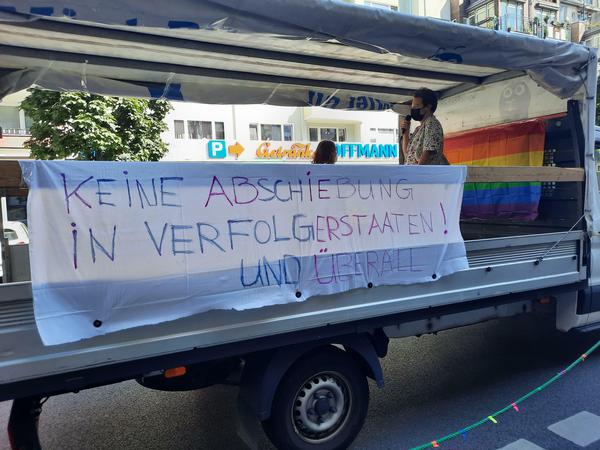 Bei der Demonstration wurde auch kritisiert, dass das Bundesamt für Migration und Flüchtlinge (BAMF) die Asylanträge queerer Geflüchteter immer wieder ablehnt...