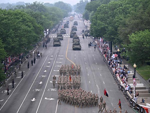 „Wir erlauben keine Diktatoren“ : Trump lässt sich bei Militärparade feiern – ein Schwerverletzter bei Protesten