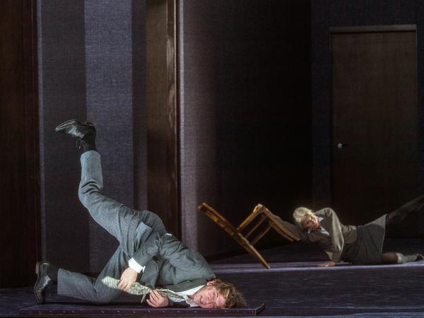 Schon der graue Filz, mit dem die zum immergleichen Wechsel aus engem Korridor und plattem Querraum verschobenen Bühnenwände ausstaffiert sind (Szenerie: Raimund Orfeo Voigt), legt sich leicht lähmend auf die Szenerie – wie Ikea für Kafka. Und geradezu gruftig wirken einige der Lied-Arrangements, denen selbst bei deutschen Trostschnulzen aus dem Zweiten Weltkrieg (!) oder Läppischem aus den Fünfzigerjahren alles pointiert Parodistische oder gar Kritische mangelt. Das zieht die Ansätze zu allem Abgründigeren immer wieder ins Seichte. Nur nicht in jenes wirklich Leichte, das laut Brecht das Schwerste ist im Theater.