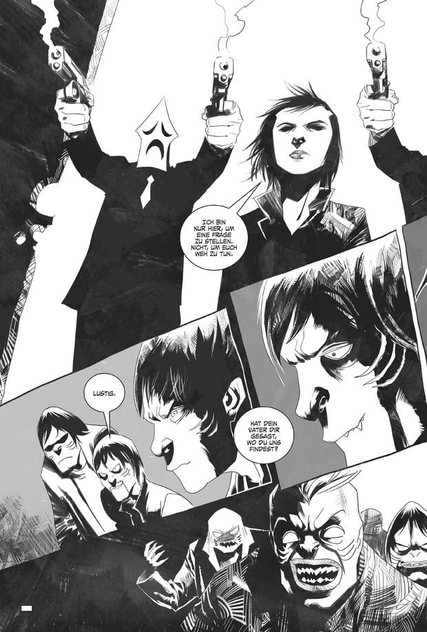 Wer sich von der teils blutigen Drastik bei „Trese“ nicht abschrecken lässt, dürfte auch Gefallen an „Death be Damned“ (Übersetzung Jens R. Nielsen, 236 S., 25 €) finden, einer mit sozialkritischen Kommentaren und derbem Humor angereicherten Zombie-Splatter-Geschichte, die Anfang 2025 auf Deutsch veröffentlicht wurde.