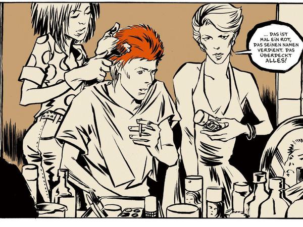 „Starman – David Bowie’s Ziggy Stardust Years“ (Carlsen, 176 S., 25 €. Luxusausgabe mit signiertem Druck, 59 €). heißt es und ist nach den international erfolgreichen Titeln „Cash: I see a Darkness“ und „Nick Cave: Mercy on Me“ die dritte Musikerbiografie, die der Berliner Zeichner als Comic adaptiert hat.