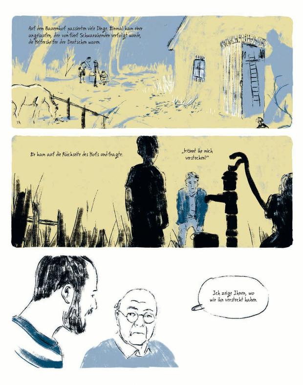 Die knapp 40-seitige Comicerzählung ist eines der drei Kernstücke der Anthologie „Aber ich lebe“ (aus dem Englischen von Rita Seuß, Verlag C. H. Beck, 176 Seiten, 25 Euro), eines internationalen Gemeinschaftsprojekts, das 2022 auf Englisch und Deutsch veröffentlicht wurde und in künstlerischer wie geschichtsdidaktischer Sicht neue Maßstäbe gesetzt hat.