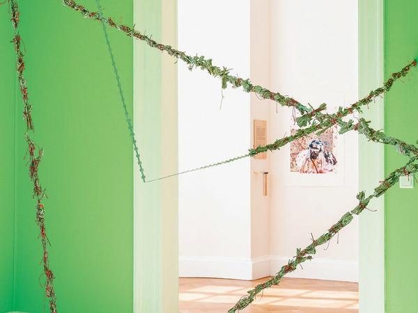 Neben der Marginalisierung Amos in Europa rückt die Schau auch die vom Abendland ignorierten Kulturen Afrikas ins Bewusstsein. Der aus Kamerun stammende Londoner Adjani Okpu-Egbe zeigt im Gartensaal Werke, die sich kritisch mit der Christianisierung des angeblich dunklen Kontinents auseinandersetzt, die zur Auslöschung afrikanischer Zivilisationen mit beitrug.