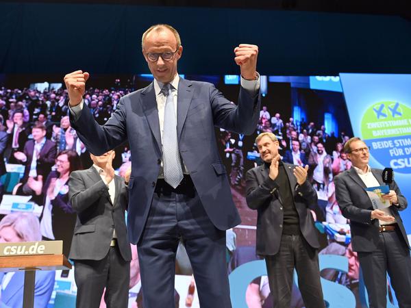 Überraschend auch, dass Markus Söder in seiner Rede entgegen seiner Gewohnheit auf jegliche Spitzen gegen Friedrich Merz verzichtet. Stattdessen betont er, wie wichtig es sei, den Kandidaten der Schwesterpartei ins Kanzleramt zu bringen. Seine kürzliche Bemerkung, bei Merz’ Vorgehen im Bundestag habe es sich um einen „steilen Move“ gehandelt, wiederholt Söder in Nürnberg nicht.