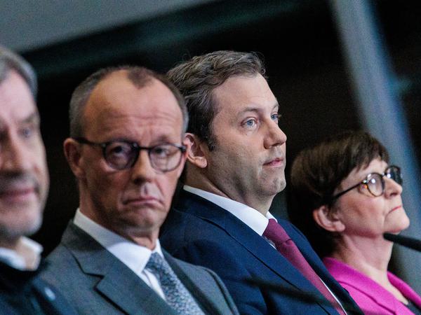 Zuvor hatten die Spitzen von Union und SPD zu einem Pressestatement eingeladen. Die Partei- und Fraktionsführungen von CDU, CSU und SPD, Friedrich Merz, Markus Söder, Lars Klingbeil und Saskia Esken hatten angekündigt, sich zum Stand der Sondierungen äußern zu wollen, teilte die Unionsfraktion mit.