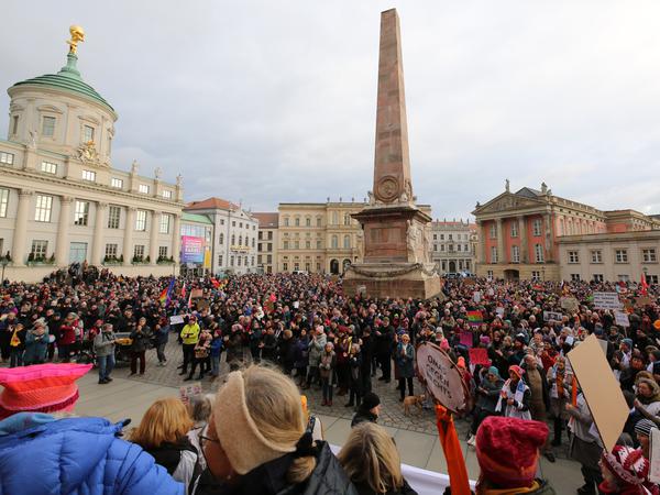 Gegen 14 Uhr hatten sich geschätzt rund 3000 Menschen zwischen dem Brandenburger Landtag, dem Potsdam Museum und der Nikolaikirche versammelt, darunter auch Stadtpolitiker verschiedener Parteien. Zu sehen waren selbstgebastelte Pappschilder ebenso wie die Fahnen von Gewerkschaften und Parteien wie Grüne und Linke.