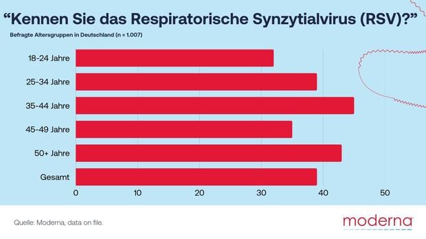 Die Umfrage zeigt: Wissenslücken bestehen insbesondere bei RSV (Respiratorisches Synzytialvirus): Nur 39,6 % der Deutschen kennen RSV, bei älteren Erwachsenen, welche am stärksten gefährdet sind, sind es 42,2 % [1].