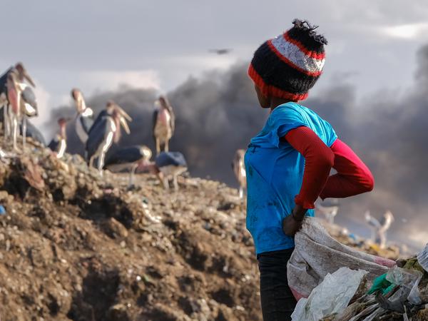 Imami (Name geändert) blickt sorgenvoll zu den lauernden Marabus auf dem Hügel neben ihr. Die Aasfresser und Unratbeseitiger sind ihre gefährlichen Konkurrenten. Sie warten nur auf eine günstige Gelegenheit, um sich mit ihren starken, 35 cm langen Schnäbeln auf den Abfall zu stürzen, den Imami mühevoll aussortiert hat. Denn sie ist Müllsammlerin und hat — wie jeden Tag — auf der großen Müllhalde in „Korogocho” am Rande der Metropole Nairobi den Abfall von Wertstoffen getrennt. Diese möchte sie auf dem örtlichen Markt verkaufen. Von dem Erlös bereitet Imami die Mahlzeiten für ihre Kinder zu.