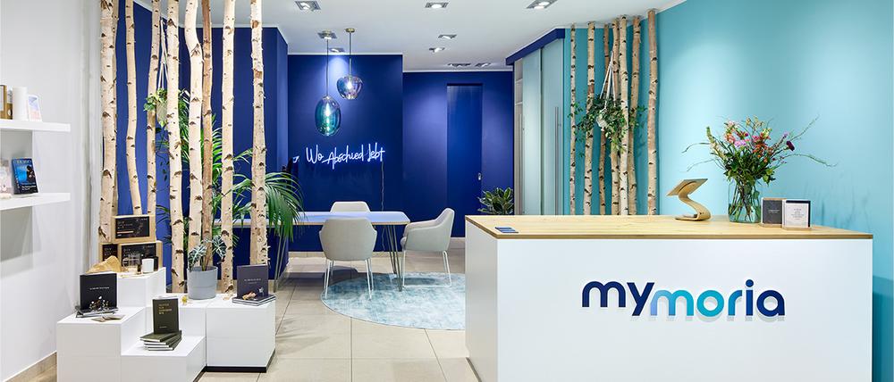 Seit 2020 erweitert mymoria sein Online-Angebot durch persönliche Vor-Ort-Beratung in eigenen Bestattungsboutiquen. Die mymoria-Boutiquen befinden sich bewusst in zentralen Innenstadtlagen, um das Thema Abschied stärker in die Mitte der Gesellschaft zu rücken. Sie bieten Kunden nicht nur einen Raum für empathische Beratung in angenehmer Atmosphäre, sondern auch ein sorgfältig ausgewähltes Sortiment an Produkten wie Kerzen, Trauerkarten oder Bücher.