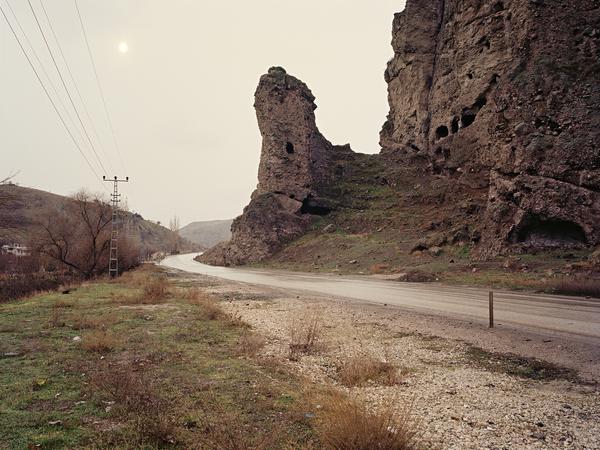 In „Broken Memories“ geben seine Landschaftsaufnahmen, meist im Panorama, Hinweise auf die gewaltsame Vergangenheit durch einen markanten Felsblock, Kirchenruinen, Mauerreste. Aber auch im Alltagsleben spürt er sie auf, wo das Narrativ einer heldenhaften Geschichte in Plakaten, archäologischen Parks oder mit Miniatur-Denkmalen von Atatürk verfestigt werden soll und doch geklittert wirkt.
