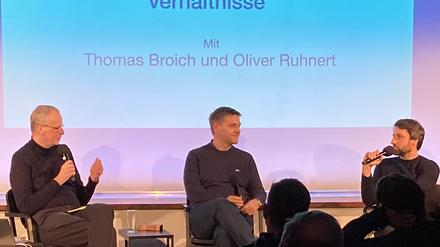 Der eine vom 1. FC Union, der andere von Hertha BSC: Oliver Ruhnert und Thomas Broich treffen beim Fußballsalon im Deutschen Theater aufeinander.