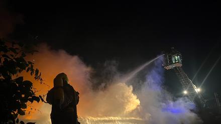 In der Nacht zu Dienstag brannten zwei Gartenlauben im Berliner Bezirk Pankow. Die Feuerwehr war mit 84 Einsatzkräften vor Ort – und rettete zehn Koikarpfen.