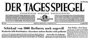 Tagesspiegel-Titelseite, Februar 1951: Die DDR-Volkspolizei hat Staaken besetzt. Familien werden gedrängt. West-Berlin ist empört und will den Staakenern helfen. Und sorgt sich um Zehlendorf und Lichtenrade.